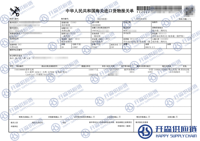 原文標題:俄羅斯翡翠毛料進口報關代理案例【經典案例】