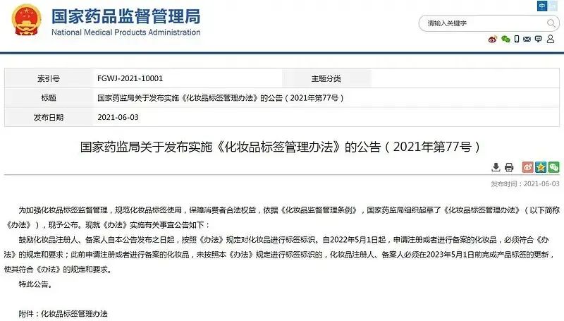 2022年5月開(kāi)始,國(guó)家藥品監(jiān)督管理局關(guān)于《化妝品標(biāo)簽管理辦法》(2021年第77號(hào))將正式施行,關(guān)于進(jìn)口化妝品應(yīng)注意以下內(nèi)容: